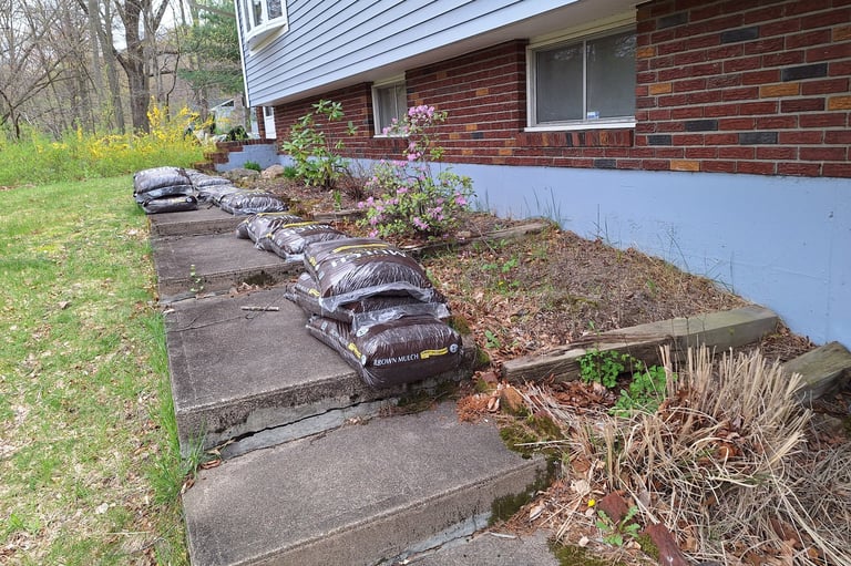 Weed, Install Weed Fabric and Spread Mulch