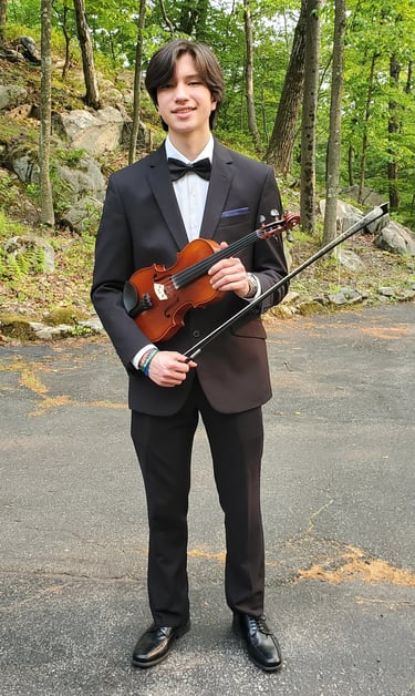 I originally started playing in 2015 because of the MTHS's Music Tour around Montville. The High School Orchestra, Band, and Choir visit the elementary schools in Montville Township every year. There in an assembly, I was extremely impressed by their performance. Later that day I asked my mom to enroll me in violin lessons as my birthday present for turning 7. It wasn't easy and at first it sounded godawful but I steadily worked on technique and consistently practiced. I played in my elementary school orchestra and later middle school orchestra. Now in high school I've had about 10 years of experience playing. I'm currently the Concertmaster in the MTHS Orchestra and Chamber Orchestra as a Senior.